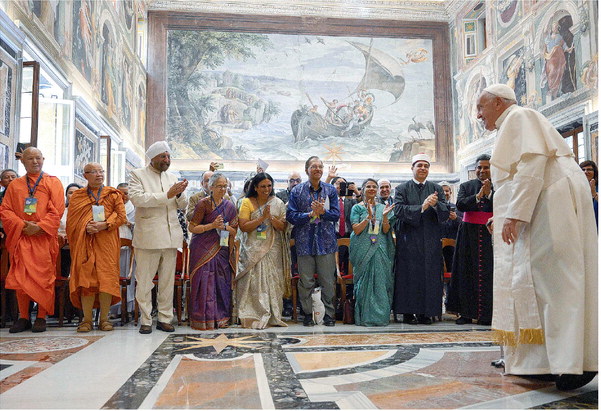Vaticano, Sala Clementina, 3 giugno 2024. Papa Francesco saluta i partecipanti al Convegno interreligioso del Movimento dei Focolari / Siciliani